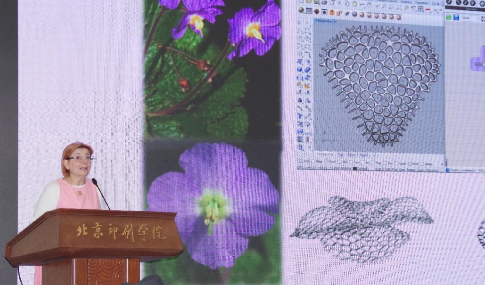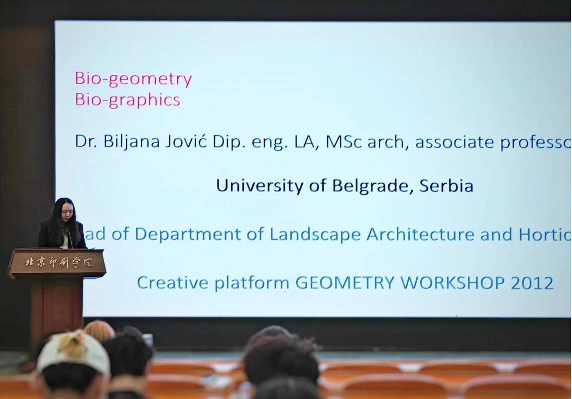 4月15日下午塞尔维亚贝尔格莱德大学(University of Belgrade)景观建筑与园艺系负责人Biljana Jović教授应邀为设计艺术学院师生在综合楼报告厅作“生物几何与生物图形(BioGeometry and BioGraphics)”讲座。讲座由设计艺术学院院长张晓东学术策划,设计艺术学院人文与未来创新设计中心全息实验室主任王硕主持并担任现场翻译。