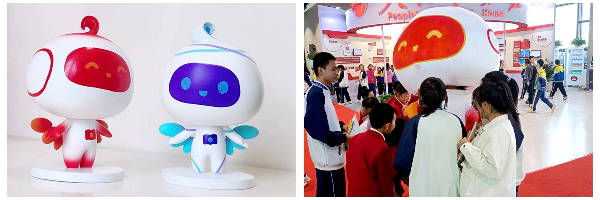 中国数字出版博览会吉祥物以可爱的小机器人为主要造型,具有亲和力和审美性的“数小宝”与“数小妹”,以光与未来为创意核心理念,成为了此次博览会现场的“红人”,生动诠释着传统出版向数字出版转型,数字出版产业将展翅高飞、前途光明。学校还完成了开幕式现场吉祥物数字动画设计及IP衍生品盲盒的设计制作等。