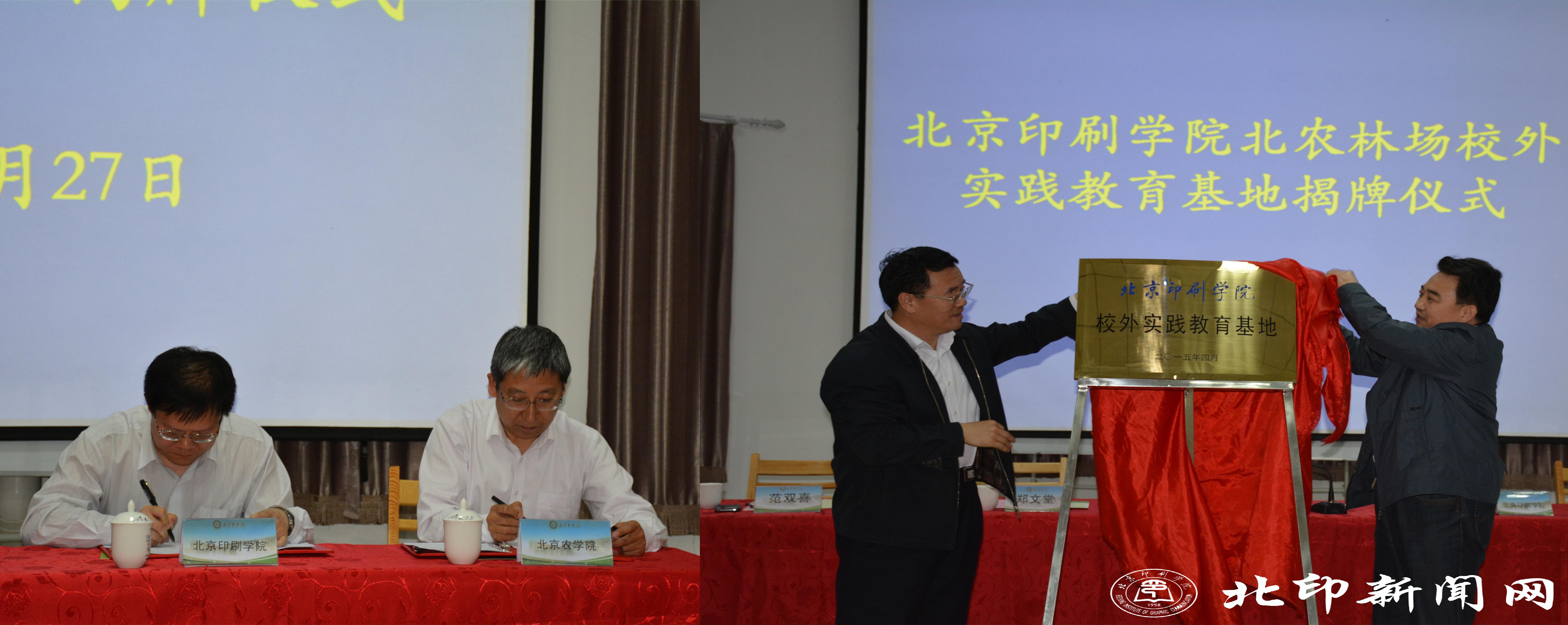 北印教务处副处长姜东升和北农教务处副处长安健共同签署了校外实践教育基地合作协议。王关义和范双喜共同为基地揭牌。