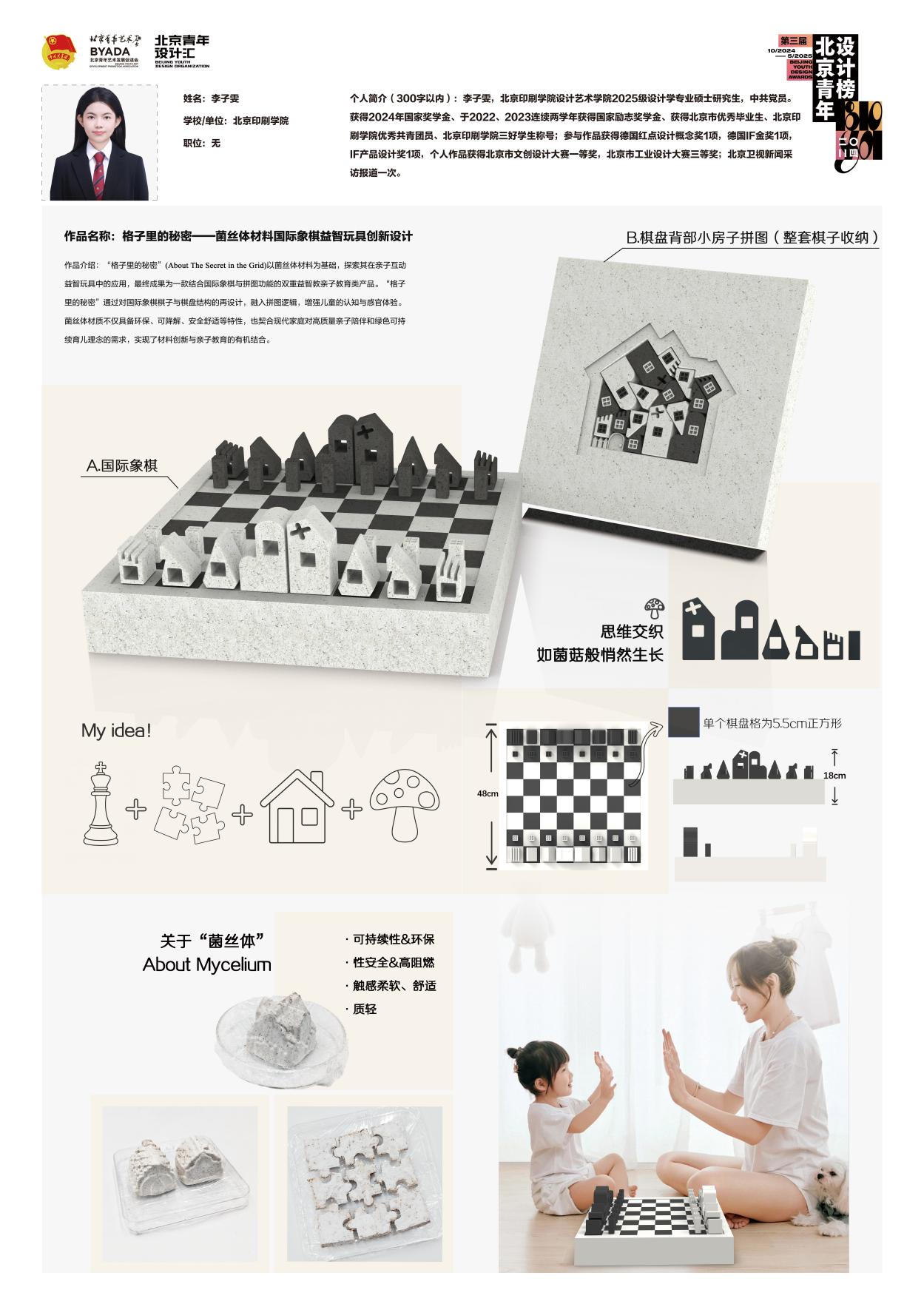 在本次活动中,学校学生凭借扎实的专业功底、鲜明的设计特色和深刻的社会洞察力,在视觉传达设计、包装设计、书籍设计、数字媒体艺术、文创产品设计等多个赛道中表现出色。2025级研究生李昊桦同学的作品《平江九巷品牌形象设计》,以平江路历史文化为根基,用现代设计语言构建“平江九巷”特色品牌视觉体系,赋能文旅体验升级。2025级研究生李子雯同学的作品《菌丝体材料国际象棋益智玩具创新设计》,是一款结合国际象棋与拼图功能的双重益智亲子教育类产品,以环保为主题,探索菌丝体材料在亲子互动益智玩具中的应用。2019级研究生崔延龙同学的作品《Crying Ability(灼泪)淡水资源保护组织品牌设计》,以“淡水危机”为核心线索,通过“Crying Ability(灼泪)”这一极具张力的品牌概念,将淡水资源枯竭的抽象危机转化为可感知的视觉叙事。2023级本科生于嘉悦同学的作品《涟漪时光》以“时钟”为视觉核心,通过澄澈通透、细腻洁净的形态,将水的纯净本质与时间的流逝意象相融合,寓意水资源与生命进程的一体性。2025级研究生刘忠博同学的作品《基于山东鲁锦体感交互设计》,以“鲁锦技艺活化”为核心,通过体感交互技术(手势识别、动作追踪、多人互动)实现非物质文化遗产与现代数字媒介的跨时空对话。