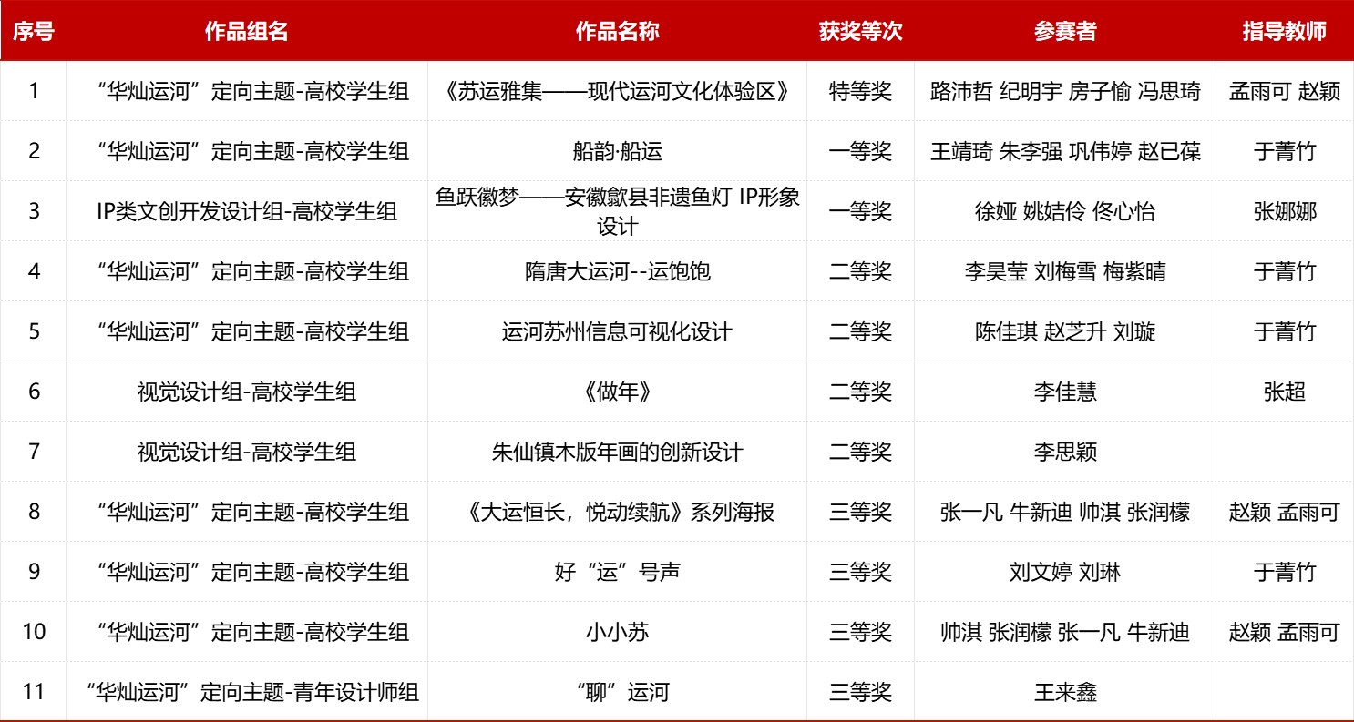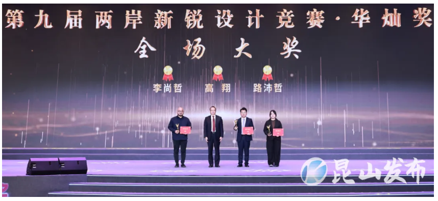 11月27日,第九届“两岸新锐设计竞赛·华灿奖”颁奖仪式在苏州昆山举行,设计艺术学院本科生及研究生共获得11个奖项,包括特等奖(全场大奖)1项,一等奖2项,二等奖4项,三等奖4项。全国人大常委会副委员长、民革中央主席郑建邦,江苏省政协主席张义珍,全国政协常委、副秘书长,民革中央专职副主席兼秘书长李惠东等多位领导出席活动并为选手颁奖。学校特等奖获奖小组学生与指导教师受邀参加颁奖仪式。