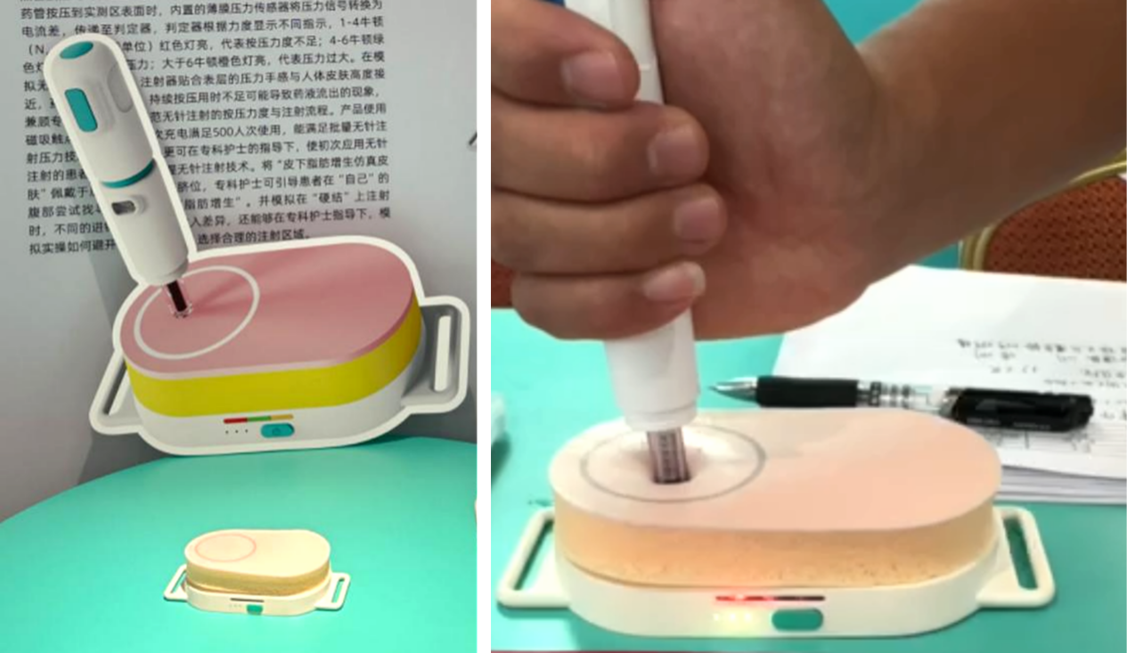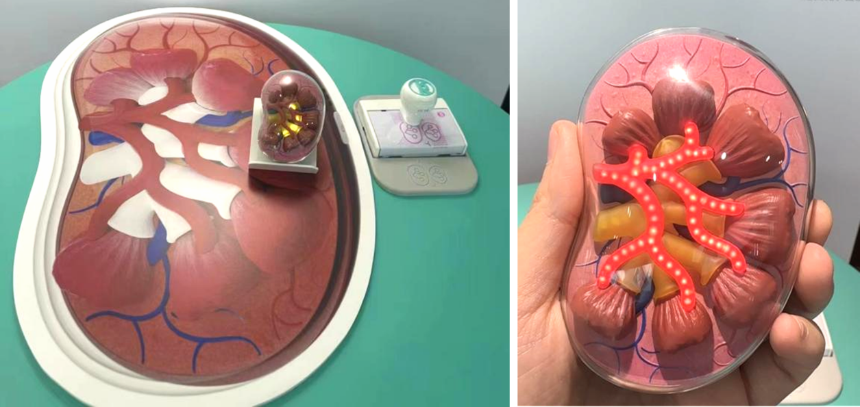 糖尿病在我国的患病比例逐年上升,糖尿病教育工具是糖尿病护理人员教育和患者健康教育的重要辅助产品,然而当前适合我国国情的、有针对性的糖尿病教具产品和设计研究都相对有限,现有教具仍存在仿真不足、缺乏教学互动性、使用体验差等问题。针对现有问题,赵颖团队受中华护理学会糖尿病专委会以及北京康适医疗科技有限公司共同委托开展了设计开发工作。团队教师赵颖、杨莉、孟雨可,学生王子奇、崔子豪、李祥、姚翊森、张赫童、毕玉龙等,紧紧围绕委托方需求和患者需要,携糖尿病肾病展示模型、注射用人工皮肤教育工具、皮下脂肪增生教育工具,以及无针注射压力检测教育工具参加展览。