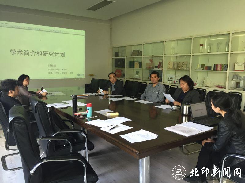 清华大学美术学院何洁教授、北京印刷学院设计艺术学院龚小凡教授、刘锋教授、杨虹副教授、张晓东副教授、滕晓铂副教授作为学术评议组成员出席了博士后招收面试会议。来自中国艺术研究院的刘芹、中国传媒大学的张贞贞、东南大学崔海瑞以及中央美术学院的郑慧铭四位博士参与了本次面试。