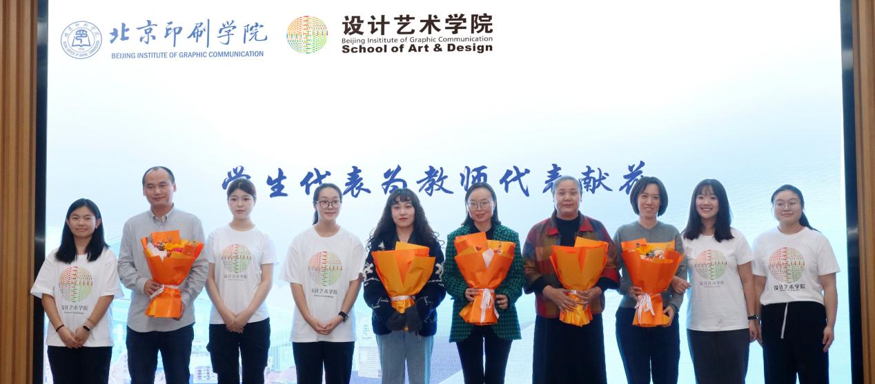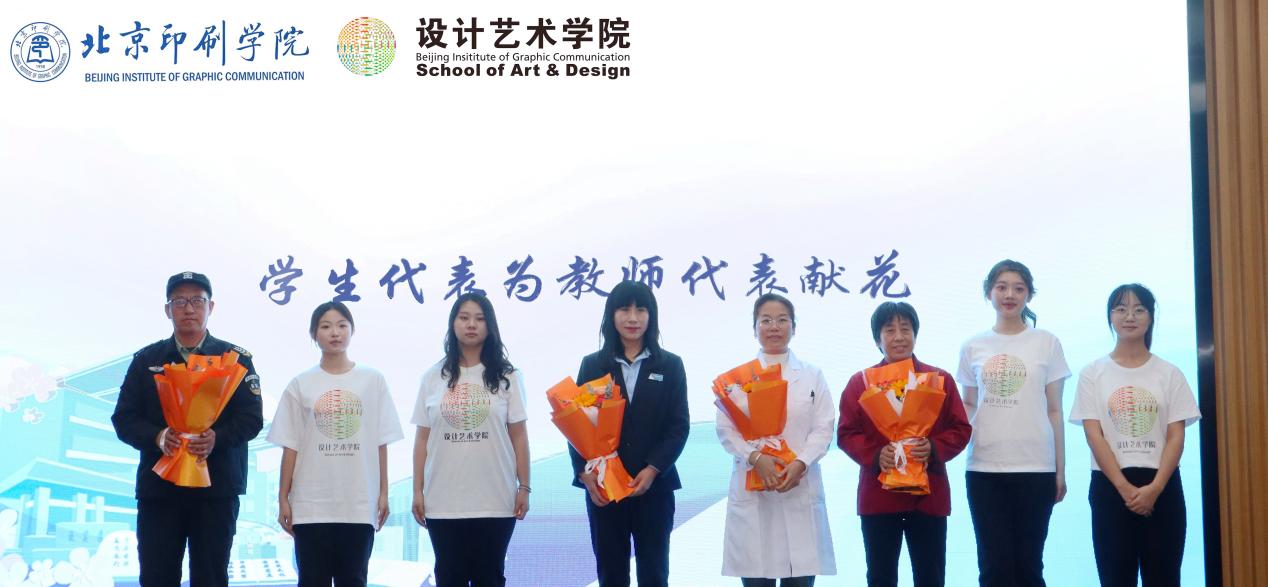 学生代表为教师和教工代表献花