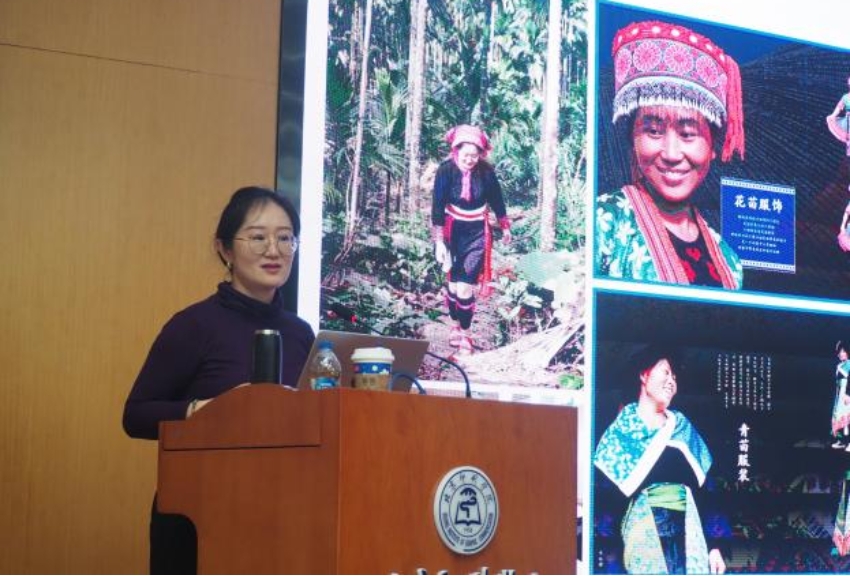贾煜洲拥有15年的非物质文化遗产田野考察经历,足迹遍布全国40余个少数民族聚居村落,积累了大量珍贵的一手资料,长期致力于探索中国民族符号在现代设计中的创新转化路径。此次讲座围绕“民族之美”和“现代之韵”两个主题展开。贾煜洲结合自身丰富的田野考察实例,系统阐述了对少数民族图案进行研究的方法和路径,并特别强调了在传统文化的挖掘过程中保持问题导向思维的重要性,以形成由表及里、逐步深入的研究体系。