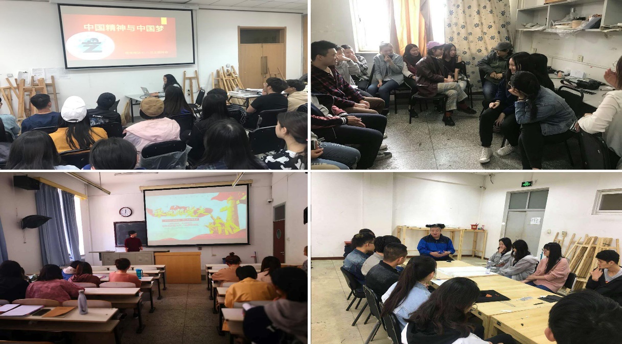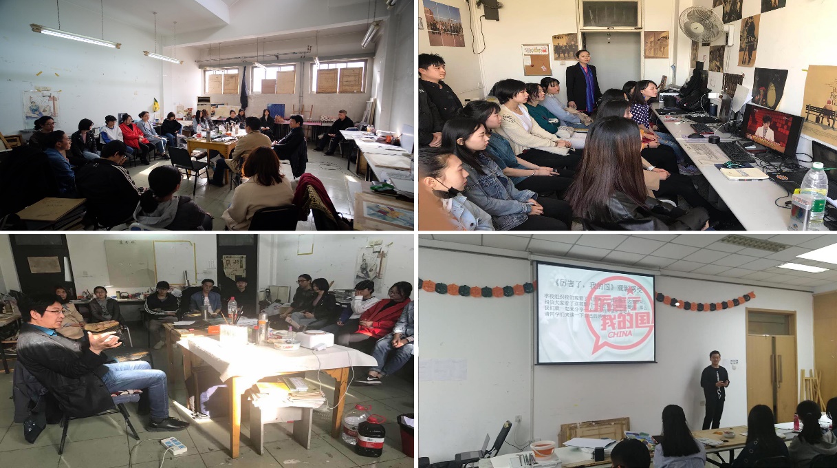 为了更好地学习十九大精神,提高设计艺术学院学生的民族自豪感与"四个"自信,加强学生爱国主义教育。设计艺术学院按照党委学生工作部、马克思主义学院要求,将学生思想政治教育引领和"形势政策"课小班讨论教学形式相结合的要求,于4月11日下午组织开展以畅谈"厉害了,我的国"观影感为基础,围绕"中国精神与中国梦"为主题的班会活动。