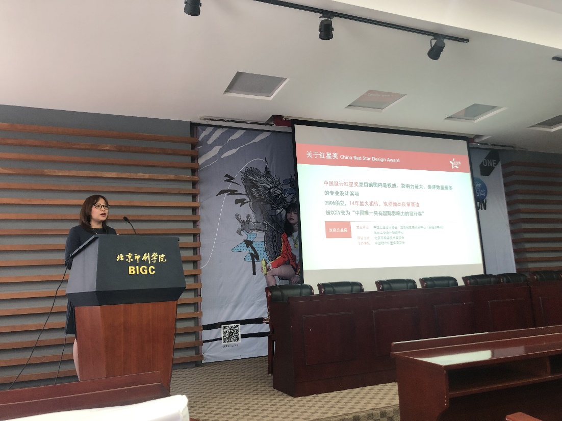 5月21日上午,设计艺术学院工业设计专业邀请中国设计红星原创奖项目负责人及往届优秀获奖者来本校教学A楼报告厅举办了“中国设计红星奖走进北京印刷学院”活动。设计艺术学院副院长张晓东,工业设计专业主任杨莉及教师赵颖参加了此次活动,此次来我校的红星原创奖团队成员包括:中国设计红星原创奖项目负责人杨馨媛;红星奖往届获奖者汉仪字体设计设计师,书法组组长刘其龙;国际服务设计联盟(北京)执行组成员徐小湾。赵颖主持了本次专业交流活动。