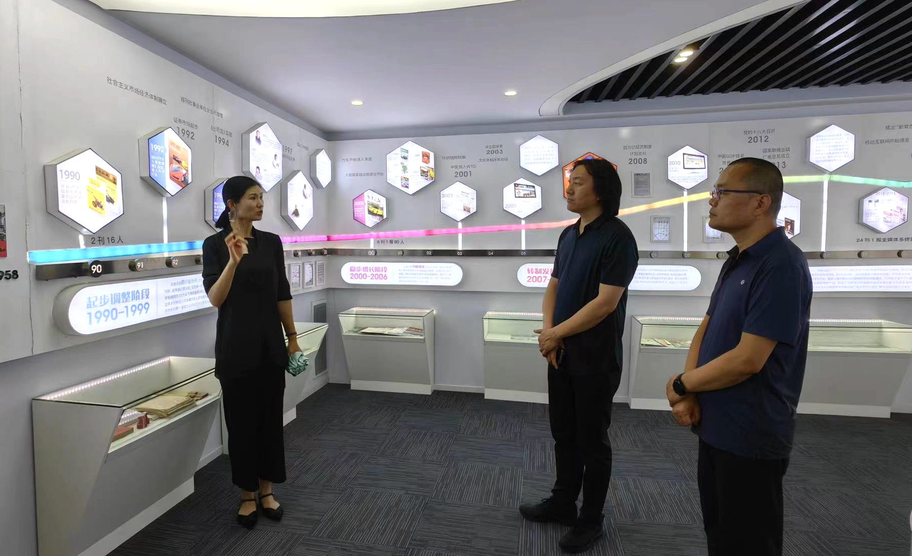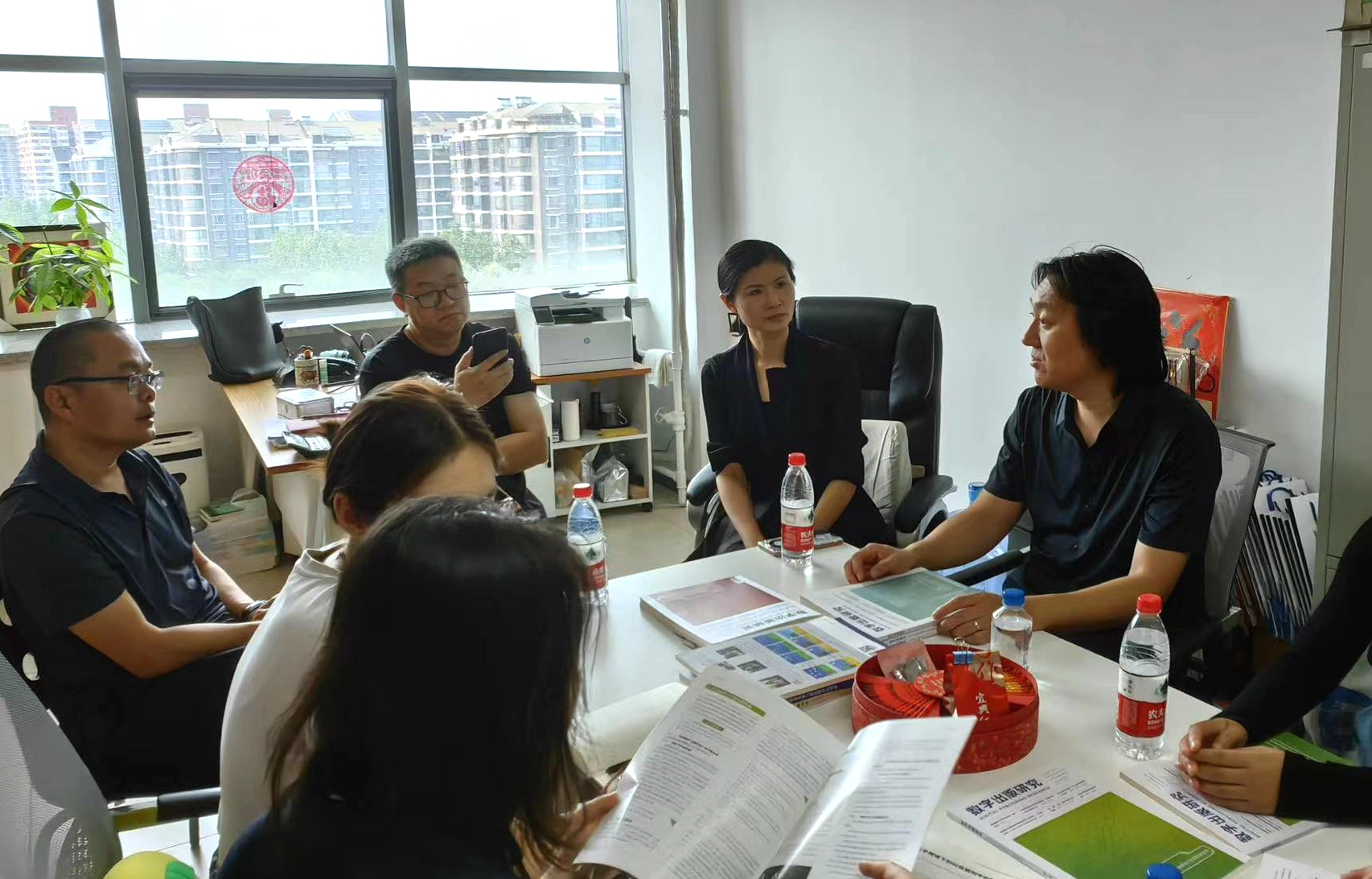在北京卓众出版有限公司运营部主任祝司峰、编辑部主任刘晶及编辑赵伊扬、祝欧扬帆带领下,设计艺术学院一行参观了公司的融媒体中心及编辑部,刘晶详细介绍了公司的发展历程、荣誉成果以及在数字出版领域进行的积极探索与实践。