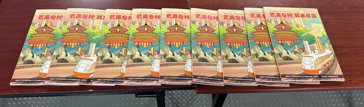 展览现场还同步展出了由设计艺术学院研究生党员同学们为鲍家铺村的孩子们创作的“艺美乡村 共庆华诞”红色主题涂色绘本,同学们发挥专业优势,传承弘扬红色文化,助力鲍家铺艺术村的美育教育。