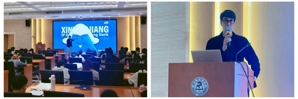 韩雷结合个人主持的“乌拉满族剪刻纸艺术”研究项目,深入探讨了民间、民族传统手工艺和非遗文创化、在地文化设计的发展趋势,强调非遗文创化并非符号堆砌,而是对文化内核的深度解码与当代转译。此外,他通过中国一汽红旗IP形象设计、新疆银行IP形象设计等实践案例,阐释如何在科技感与东方美学的碰撞中塑造具有情感共鸣的设计作品,展示了设计与民族美学的融合路径。作为中国青年创青春大赛的学术召集人,韩雷结合赛事评审经历与青年创作者的典型案例,鼓励在场学生跳出学科边界,在真实项目中积累创作厚度。