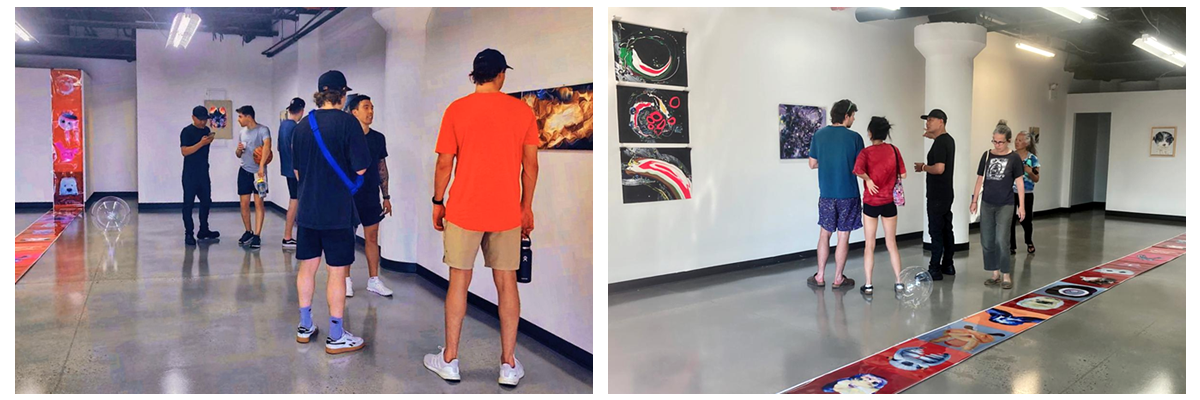 彭麒向各领域专家介绍了关于绘画与科技相结合的艺术创作成果与思考,还特别介绍了学校绘画专业在科技与艺术上的新探索、新成果和新发展,受到了观展嘉宾的一致好评。
