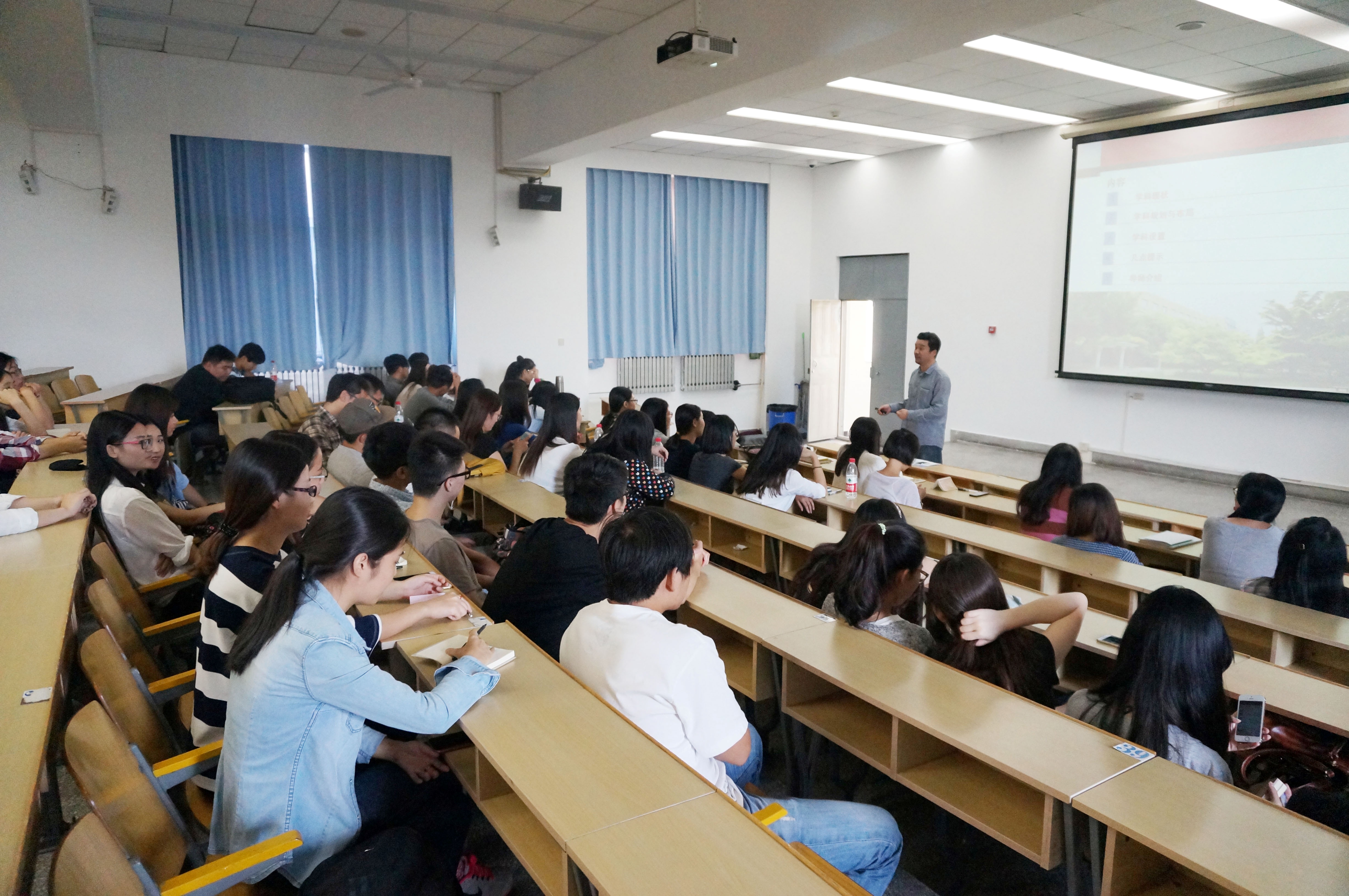 杨虹首先代表学院对15级研究生入学表示衷心的祝贺并热烈欢迎他们成为设计艺术学院大家庭的一员,并从"学院研究生教育发展历程"、"学院学科框架与建设思路"、"硕士生导师及研究方向介绍"和"研究生阶段的学习重点"等四个方面做了理论丰富、联系实际、数据详实、启迪性强的专题报告。紧密结合研究生培养教育方案,向研究生新生明确了培养目标和标准,强化了学术诚信重要性,指引了研究方向选择思路,提出了专心科研、自主学习的要求。袁园详细介绍了研究生日常管理、学风建设、奖学金评定等工作,讲座伴随着同学们热烈的掌声结束。