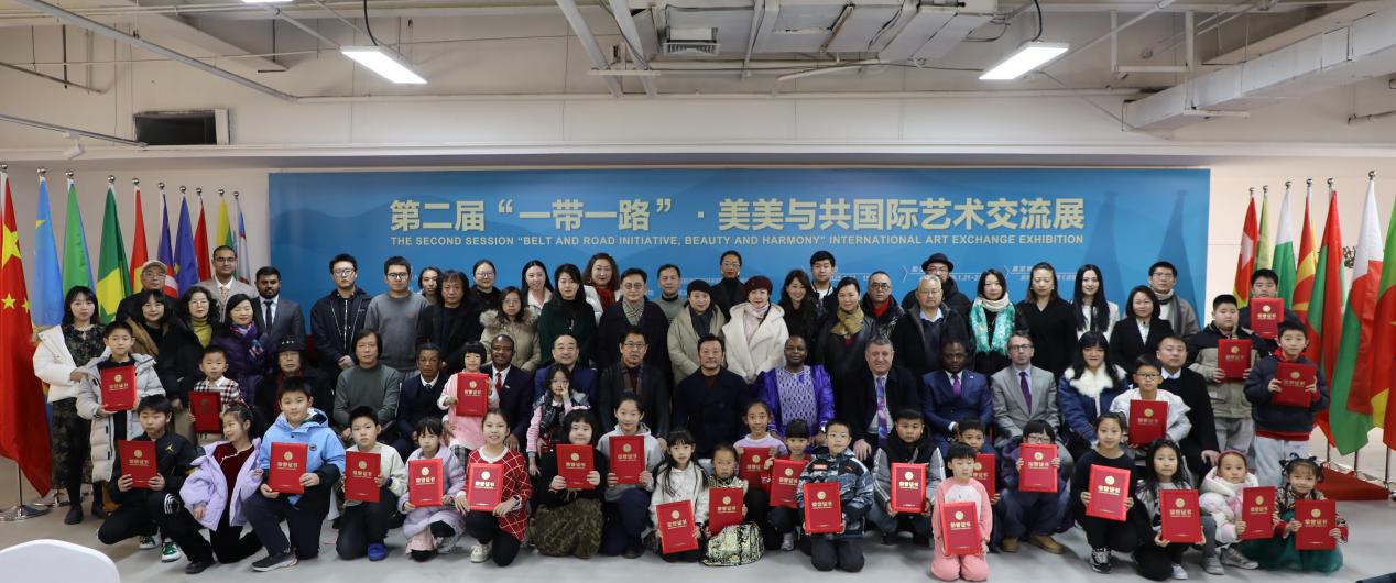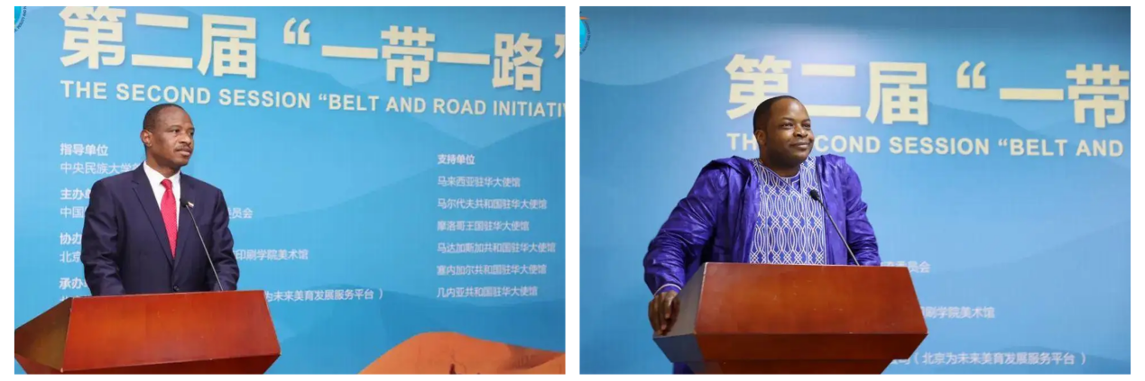 1月21日下午,由中央民族大学美术学院学术指导,中国服务贸易协会国际交流工作委员会主办,北京印刷学院设计艺术学院、北京印刷学院美术馆协办,北京为未来文化艺术发展有限公司承办,马来西亚驻华大使馆、乌兹别克斯坦共和国驻华大使馆、马尔代夫共和国驻华大使馆、牙买加驻华大使馆、摩洛哥王国驻华大使馆、刚果共和国驻华大使馆、马达加斯加共和国驻华大使馆、赤道几内亚共和国驻华大使馆、塞内加尔共和国驻华大使馆、科摩罗驻华大使馆、几内亚共和国驻华大使馆支持的第二届“一带一路”·美美与共国际艺术交流展在北京海淀美术馆(北馆)开幕。