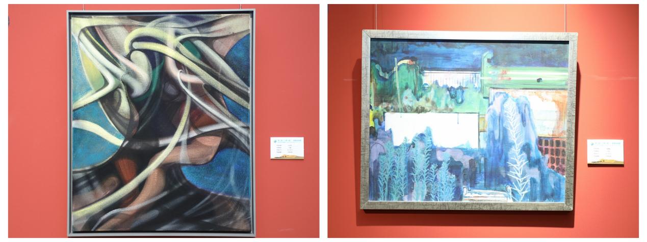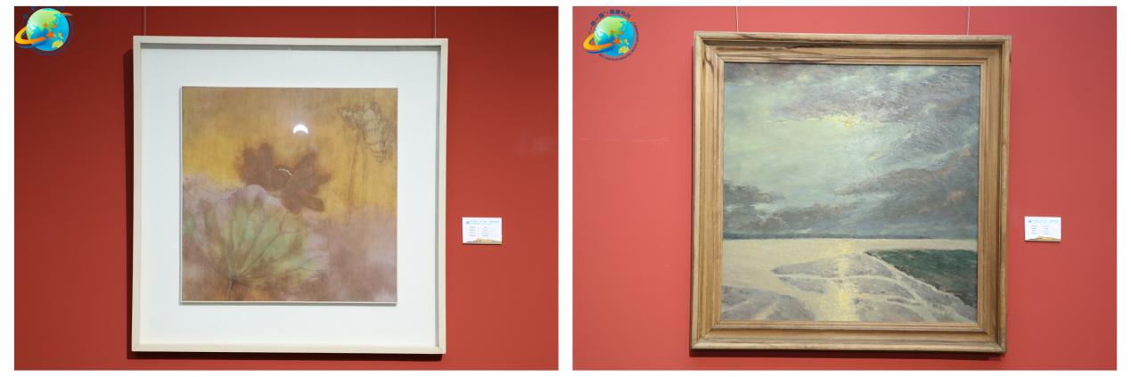 田忠利,莲,50×50cm,纸本水墨;史民峰,一衣带水,80×80cm,布面油画