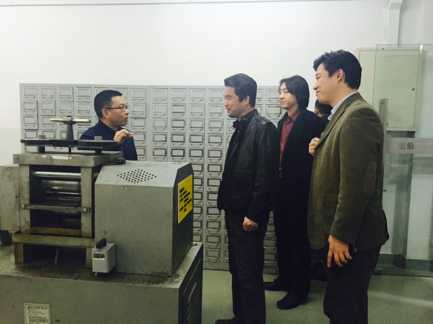 詹炳宏教授向印刷学院一行介绍特色工作室与实验室