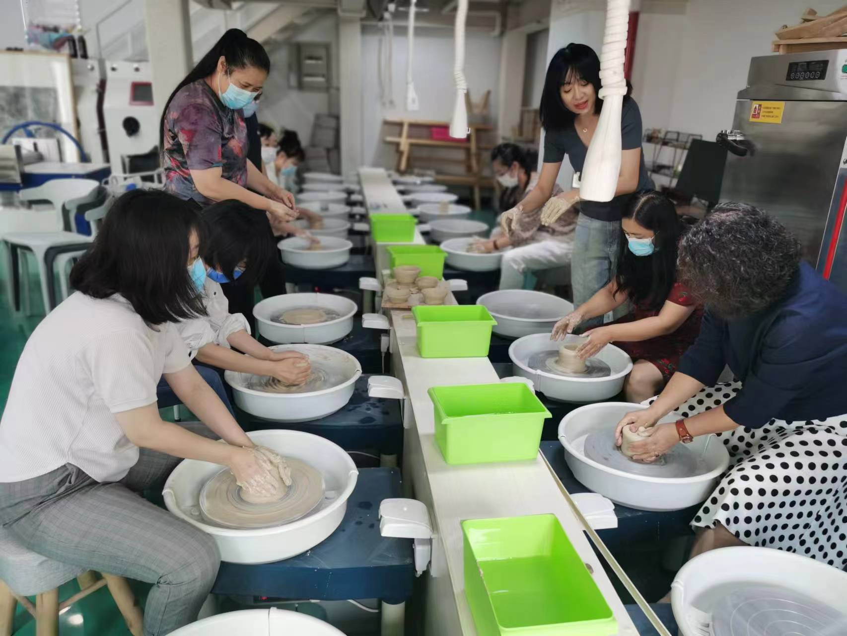 此次活动可以让大家亲身感受传统陶艺之美,会员们积极踊跃报名,参与热情高涨。在设计艺术学院教师徐心悦和龙友的指导帮助下,各位老师都完成了自己的作品,活动现场氛围轻松愉悦。