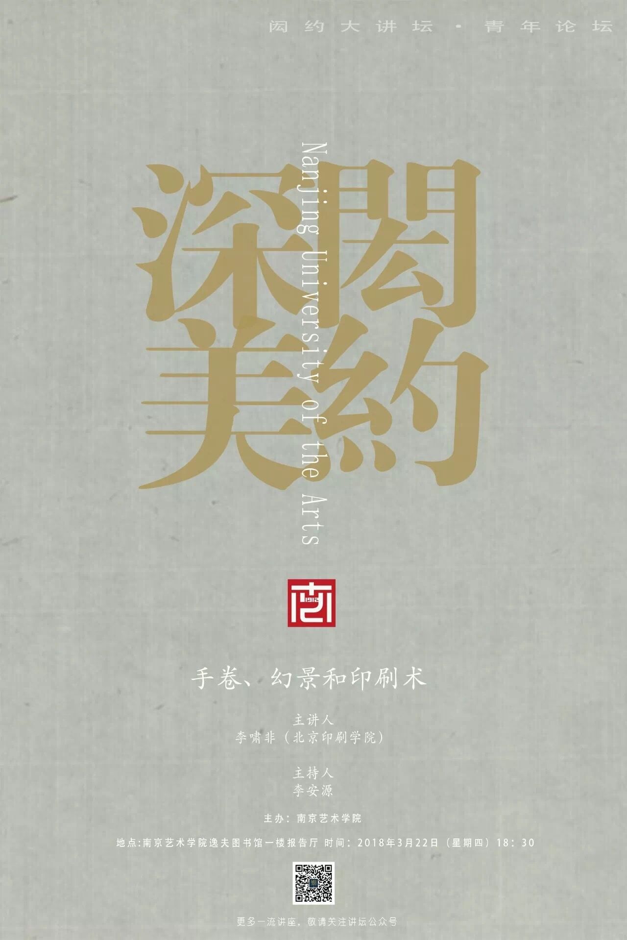 3月22日,我校设计艺术学院李啸非副教授应南京艺术学院的邀请,在南艺的“中华古籍保护名师讲堂”和“闳约大讲坛”举行专题讲座,为南艺师生带去了两场印象深刻的学术交流。
