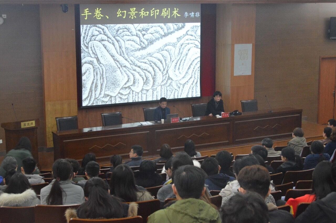“闳约大讲坛”作为南京艺术学院的重要学术平台,吸引了来自文学、戏剧、艺术等领域的知名学者。李啸非以“手卷、幻景和印刷术”为题,关注十六世纪末印刷业出现的新趋势,及其造成的视觉及物质文化方面的影响。通过分析典型作品在材质、意涵、观看方式等方面的转换,探讨版画图像在获得多元文化资源之后,在形式语言上具有的跨领域可能。