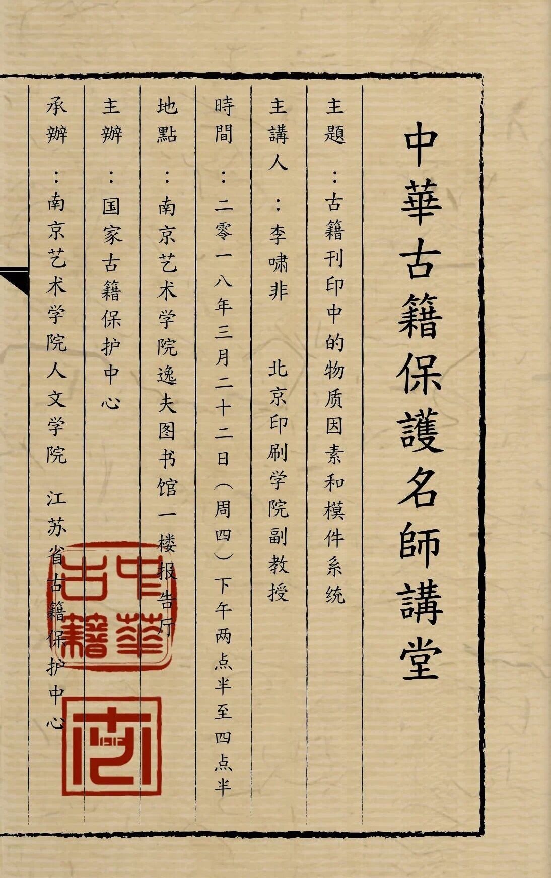 中华古籍保护名师讲堂海报
