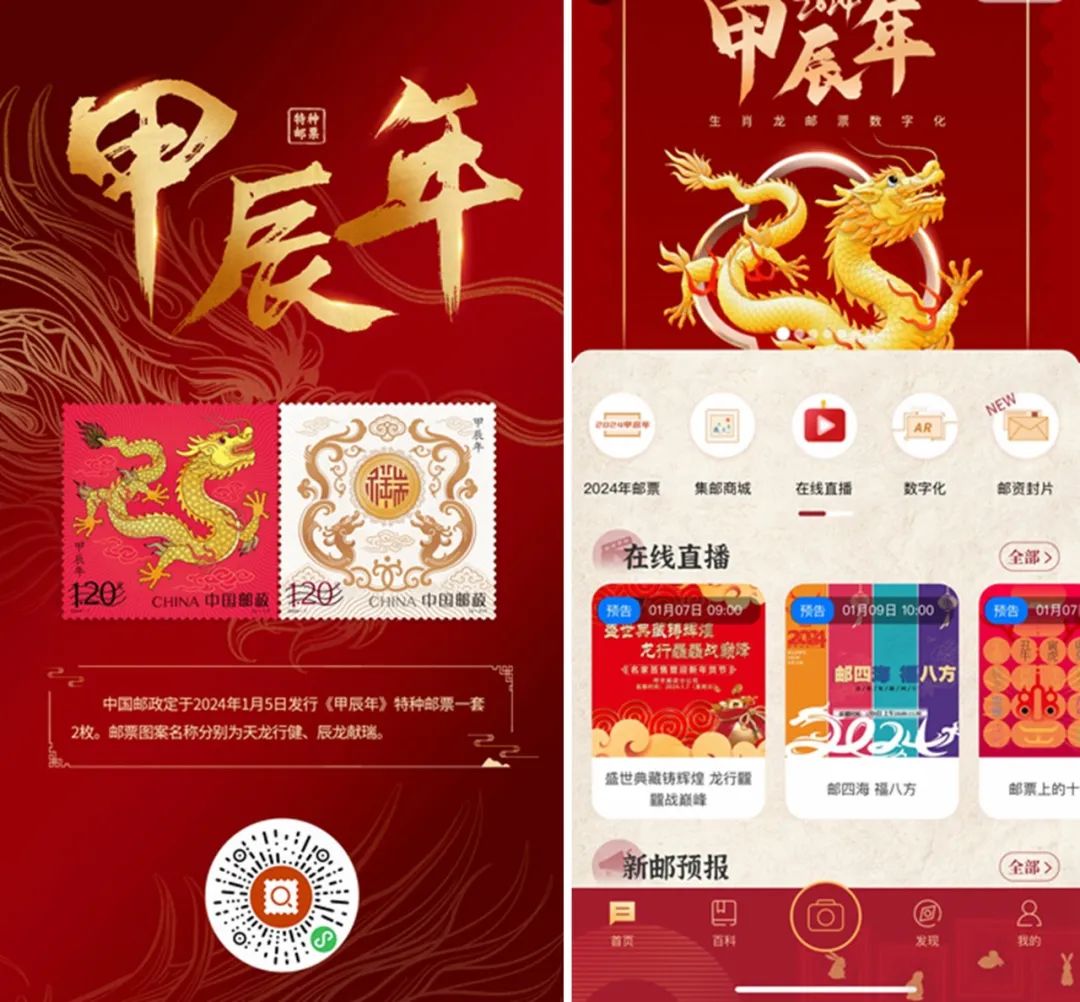 北印团队创作的甲辰龙年生肖邮票数字化设计,是在完成庚子鼠年邮票数字化设计之后第二次承担生肖邮票数字化创作任务,相关设计一经推出就收到热烈反响,极大提升了生肖邮票的传播效能。受众可以通过“中国集邮百科”等多个公众号平台,体验AR和动画视频,在传统的欣赏、研究、集藏邮票的基础上,能更好地进行自媒体社交、娱乐性互动,更好地激发邮票业内生态活力,促进其更好地发展。