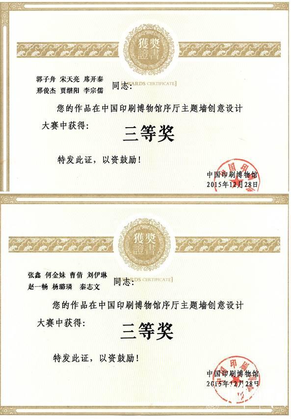 2015年4月,中国印刷博物馆举办了主题为“我们的印刷术,世界的印刷术”序厅主题墙创意设计大赛,目的是为中国印刷博物馆330平方米中厅主题墙做创意设计,打造中国印刷博物馆的文化性、交流性、趣味性和专业性的形象。北印设计艺术学院师生积极参加,反复研讨修改设计作品,最终喜获佳绩。