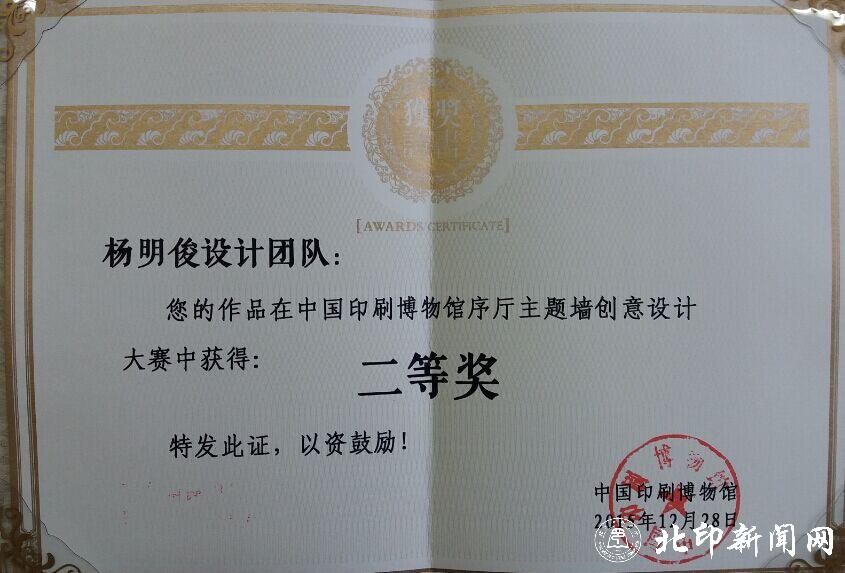 12月28日下午,在中国印刷博物馆的多功能厅,举行了由中国印刷博物馆面向全社会征集的主题为“我们的印刷术,世界的印刷术”博物馆330平方米中厅主题墙面创意设计作品大赛颁奖仪式。北印设计艺术学院教师杨明俊设计组获得大赛二等奖,由教师叶蕤指导学生张鑫设计组和郭子舟设计组分获大赛三等奖。中国印刷博物馆馆长袁亚平、党组书记张连章、副馆长刘拥军等为获奖代表颁发了获奖证书与奖金,学校师生代表出席了颁奖仪式。