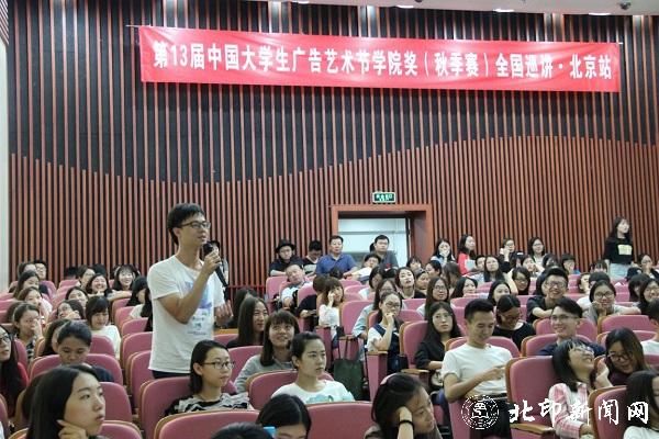 9月21日下午,第十三届(2015-2016)中国大学生广告艺术节学院奖秋季赛全国巡讲•北京站在北京印刷学院综合楼报告厅隆重举行。会议由北京印刷学院设计艺术学院副院长张晓东副教授主持,北京印刷学院副校长王关义代表东道主致欢迎辞,北印科研处副处长史民峰教授、新闻出版学院高萍教授、设计艺术学院刘秀伟教授出席盛会。来自北京印刷学院、北京城市学院、北京工商大学、燕京理工大学、天津体育运动与文化艺术学院等学校近300名师生来到巡讲现场。
