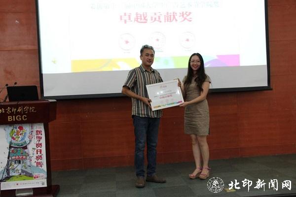 随后,组委会代表——广告人杂志社活动总监李宏毅先生向北京印刷学院颁发了"卓越贡献奖",感谢北印为学院奖做出的卓越贡献。