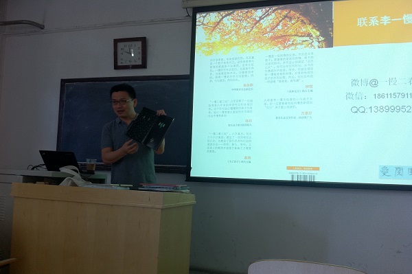 6月12日,新阅读研究所李一慢老师,在教C楼410为设计艺术学院美术系出版绘画专业12、13级学生举办了《儿童的绘本》讲座。 李一慢老师凭借广博的知识,运用风趣幽默的语言介绍了绘本编创的文字修养,图像绘画技能,儿童阅读心理分析等相关知识点,启发了师生在绘本创作方面的思考,尤其在文化的广度和深度方面为师生打开了一扇窗。