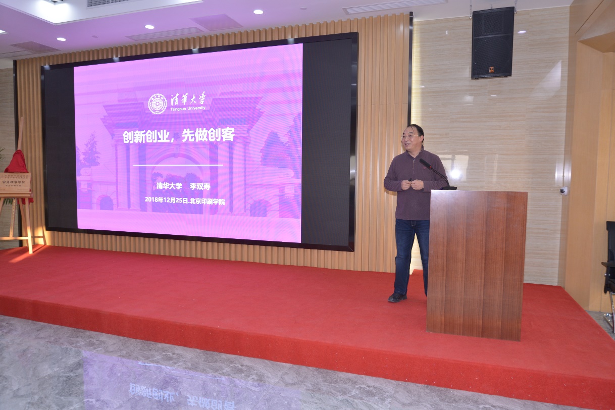12月25日下午,受设计艺术学院工业设计专业邀请,清华大学基础工业训练中心主任李双寿教授来我校举行了题为《创新创业,先做创客》的讲座,李双寿教授围绕不同专业协同创新创业、智能制造等专题进行了精彩讲座,设计艺术学院党委书记史民峰、院长张彬、党委副书记史河、工业设计专业主任杨莉以及工业设计专业多名教师出席了讲座,活动全程座无虚席,气氛热烈。