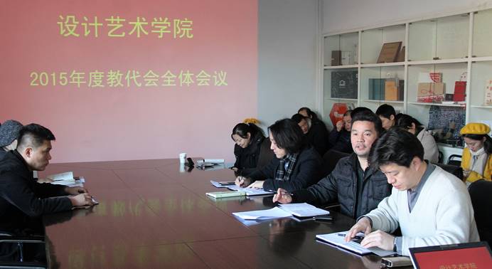 2015年是设计艺术学院"十二五"发展规划收官之年,也是总结经验、科学谋划"十三五"的关键一年。2016年1月6日,设计艺术学院召开教师代表大会,会议由学院党委书记杨虹主持。 会上,杨虹书记做2015年度设计艺术学院行政工作和工会工作报告,并重点汇报了2015年度设计艺术学院经费和分工会经费使用及管理情况。随后,设计艺术学院各系主任和基础部主任(张晓东副院长兼任)分别汇报了各系部一年来的教学、科研工作等主要成果,并对2016年的工作做出了展望。设计艺术学院全体教职工参加了会议。
