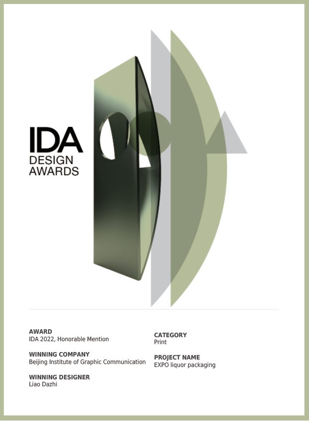 IDA(International Design Awards)是美国最具权威的国际设计大奖之一,2007年创办于美国加州,倡导设计的可持续性、科学性、智能性,评选条件严格,该奖项设置覆盖建筑设计、室内设计、产品设计、时尚设计、平面设计等五个门类。致力于引起人们对全球设计的反传统、概念化和创造力出色的作品的关注。旨在奖励和推广国际设计领域取得了卓越成就的创造者,并在全球范围内发掘建筑,室内,产品,平面和时尚设计方面的新兴人才。