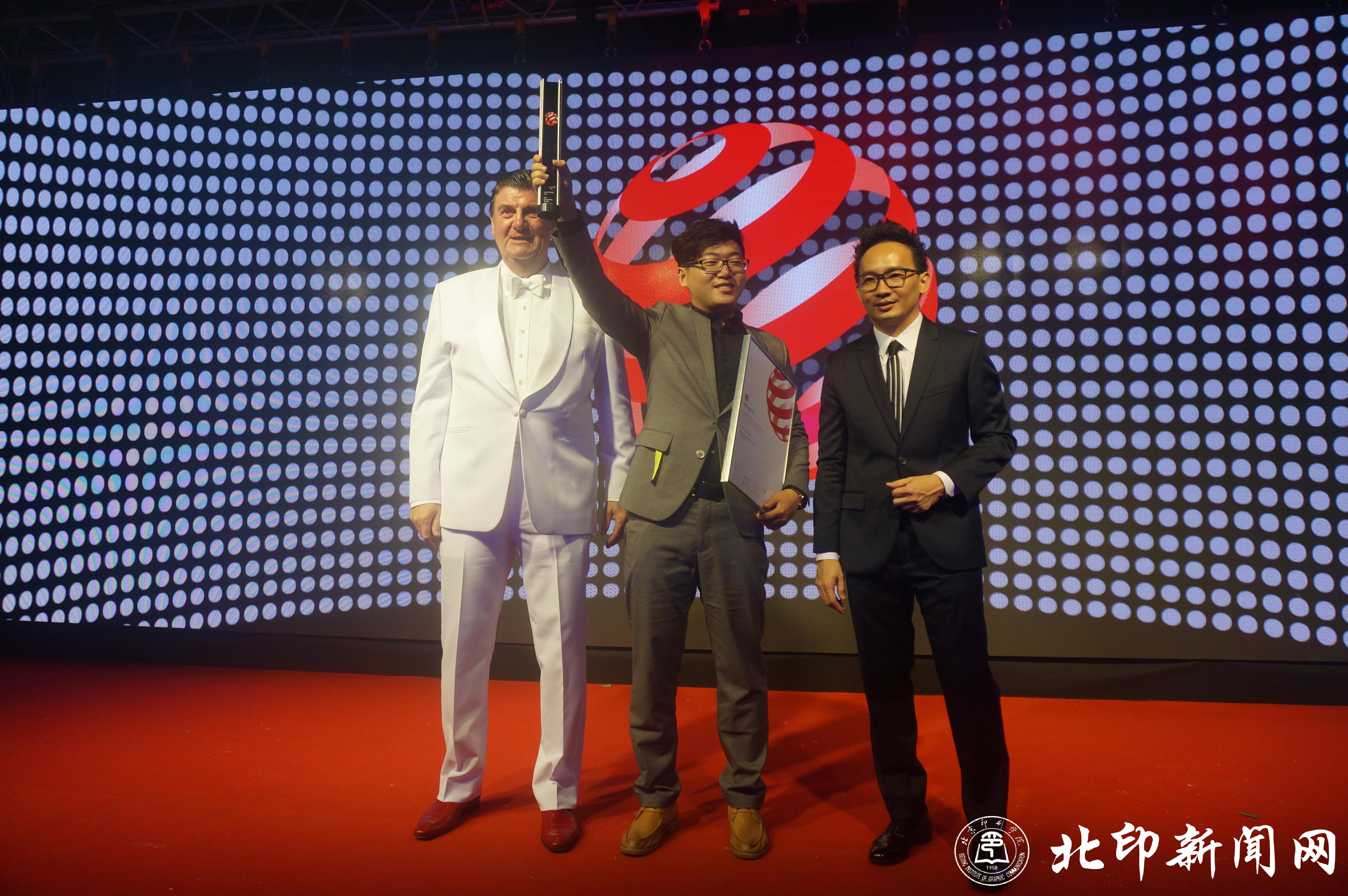 颁奖典礼上,王鹏作为红点至尊大奖的得主,第一个站到了领奖台上。当他在颁奖台上振臂挥舞至尊大奖的奖杯时,宣示了北印实践教学、创新教学的最好成果。
