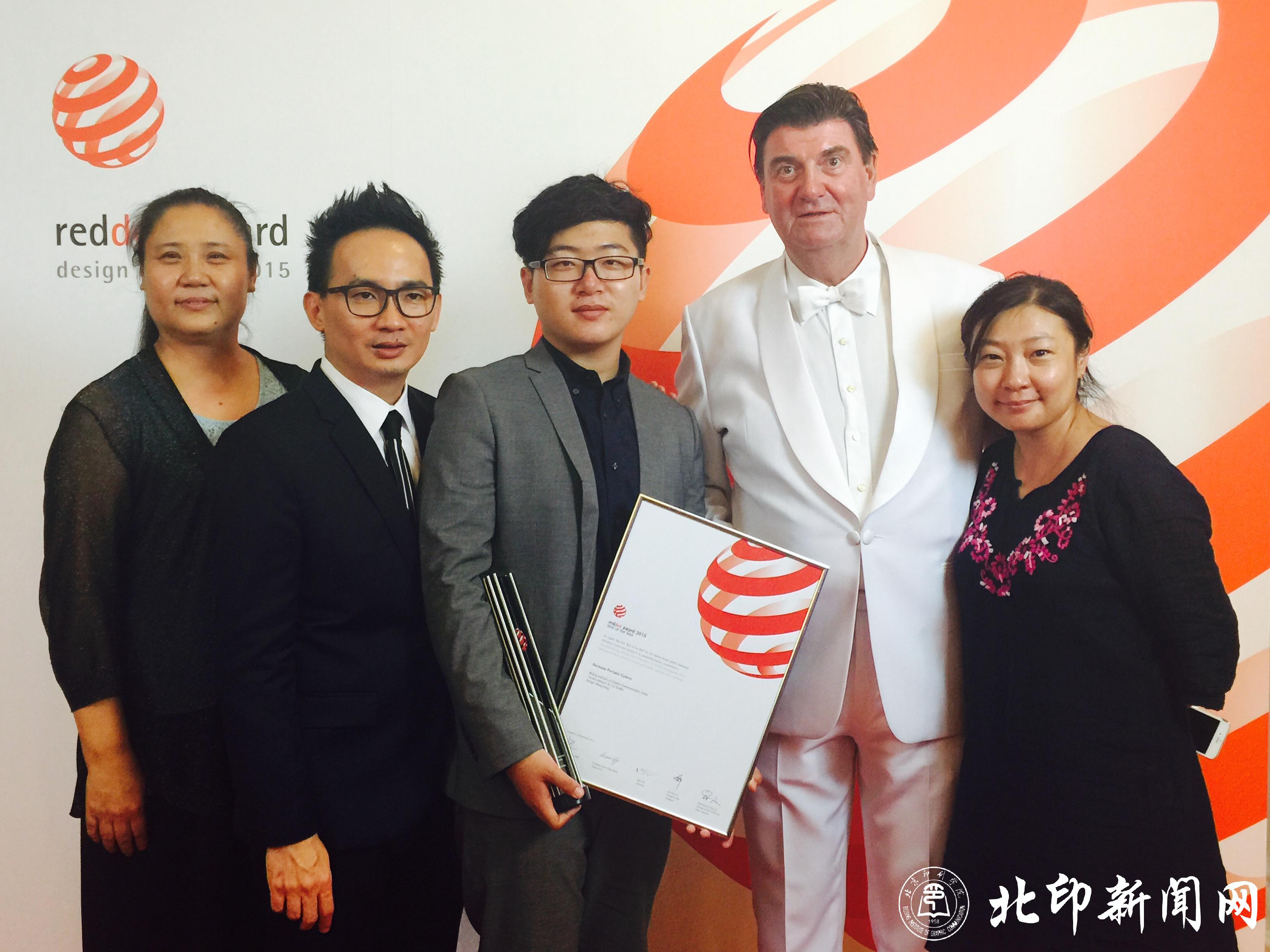 2015年德国红点奖概念设计大奖颁奖典礼于9月25日在新加坡红点博物馆隆重举行,来自世界各地的获奖者兴高采烈、载歌载舞通过红地毯接受这非同寻常的殊荣。设计艺术学院15级研究生王鹏同学的设计作品《和·旅行餐具》获得红点奖概念设计奖,并问鼎“红点至尊大奖”,登上了设计类国际顶级大赛的最高领奖台。