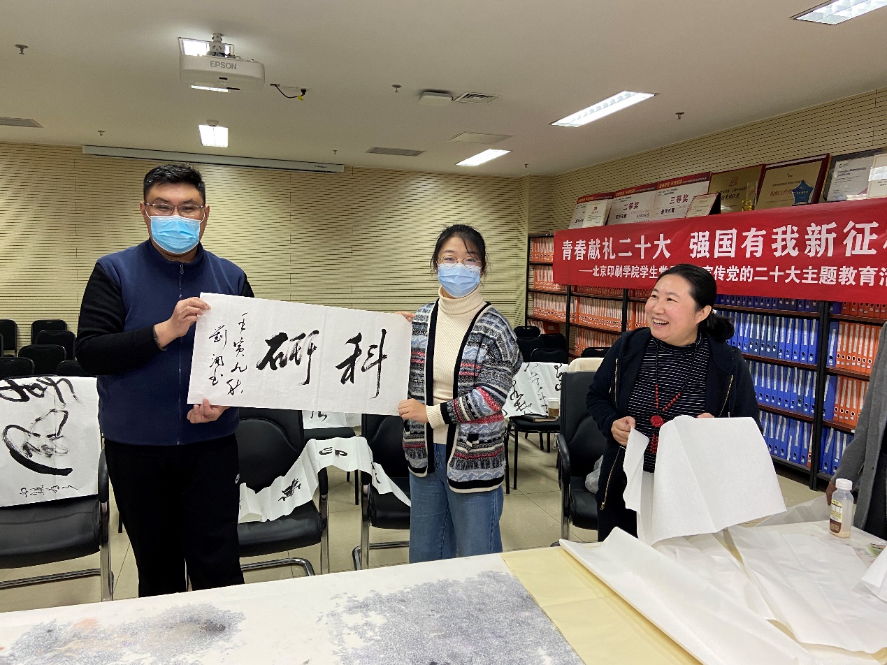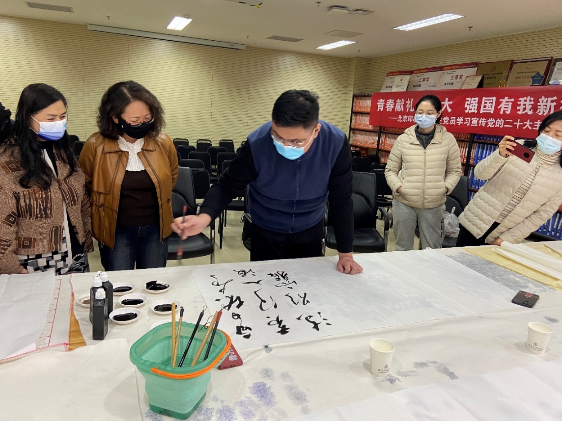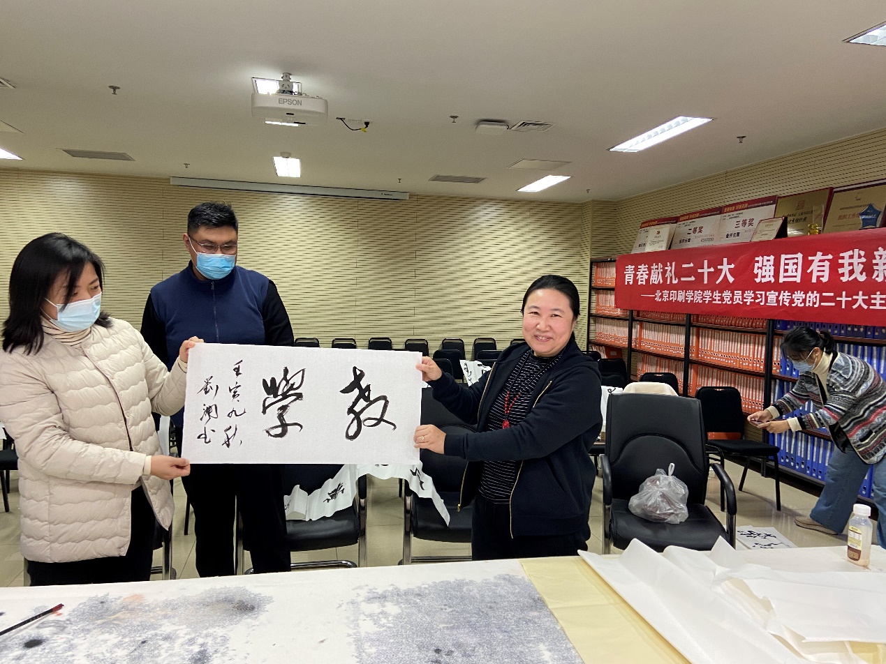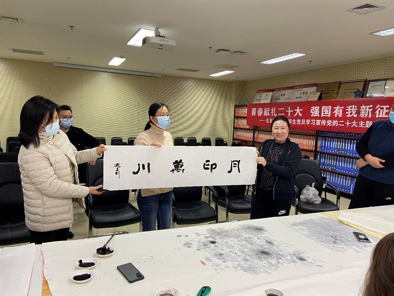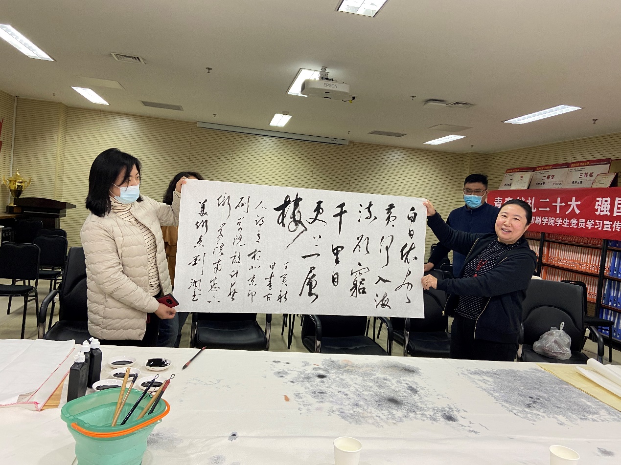 会员们积极踊跃报名,参与热情高涨,在学习贯彻二十大精神的同时开展书画创作,体验书法绘画等传统艺术的魅力。在设计艺术学院窦向亲、崔迎春、刘阔、黄勤、龙友等教师的示范引导下,各位老师都得到了自己心仪的作品,活动现场掌声不断。