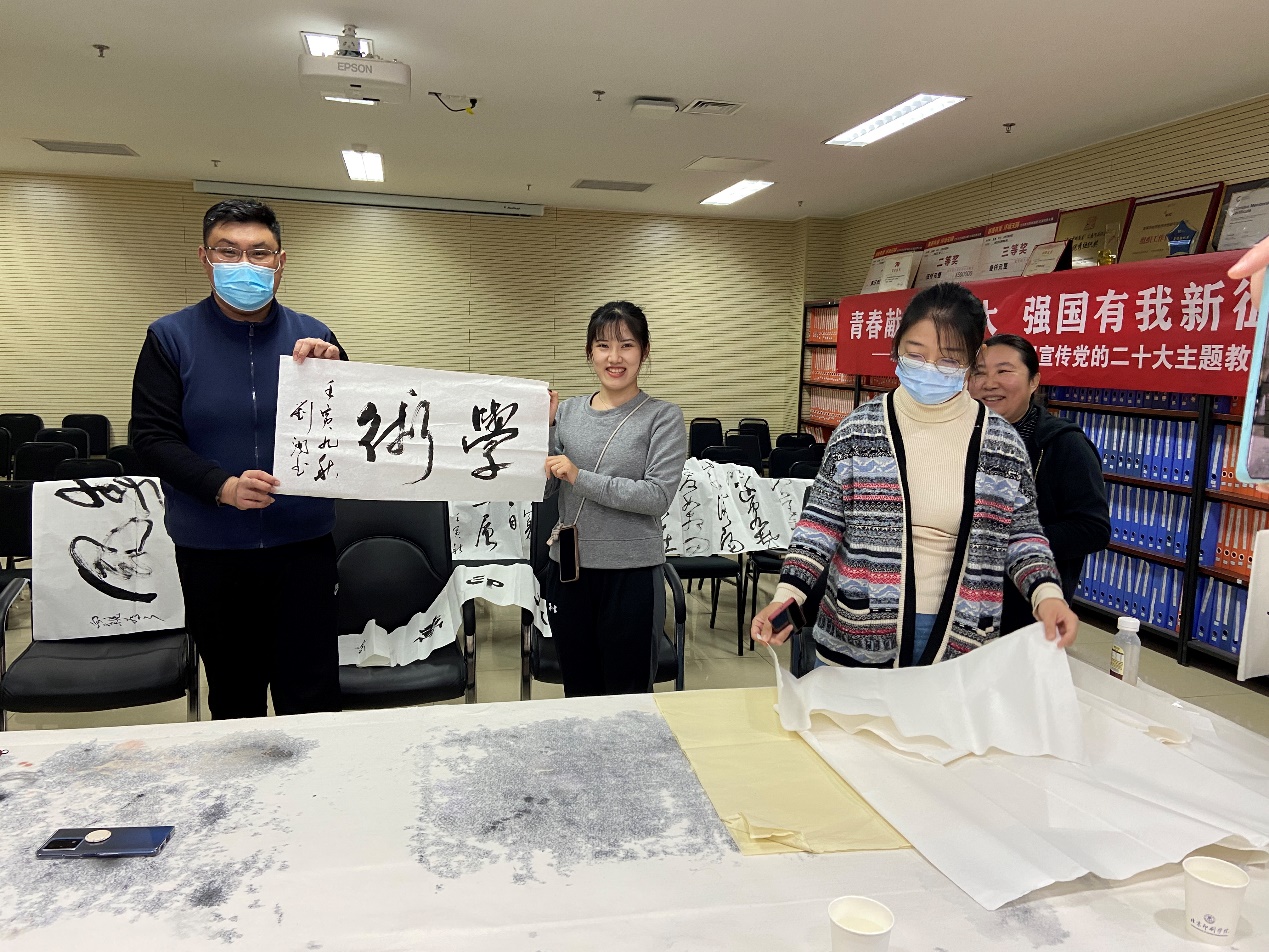 为了进一步丰富设计艺术学院分工会会员的文化生活,同时加强二十大精神的学习贯彻,2022年11月2日上午,设计艺术学院分工会组织会员围绕“奋进新时代、丹青颂未来”的主题,在会议室开展书法绘画体验活动。