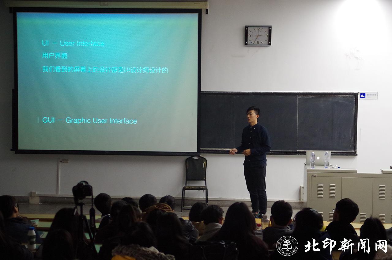 11月12日下午,UI中国与北印合作并邀请了智库灯塔UI设计讲师宋韶伟莅临学校,为北印设计艺术学硕士研究生及部分本科生做了主题为“UI动效——走进动效设计”的讲座。讲座由设计艺术学院隋涌副教授组织,该学院部分教师、研究生和本科生约共计100多人参加了讲座。