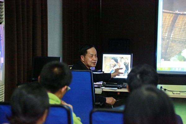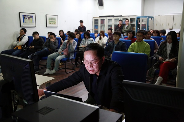 讲座过程中江志顺将军结合自己大量创作作品《三代人》、《三村的节日》、《奶奶,您猜猜》分别获亚太地区第七届、第八届、第十届摄影比赛二等奖、卡宾达奖、奥吐莫卡奖;《中华健儿勇创虎跳峡》获1986年全国最佳新闻照片奖、第八届全国好新闻一等奖;《生死线上》获第14届全国摄影艺术展览银牌奖;《邓小平在军委扩大会上》获中国人民解放军第一届艺术奖;《政权交接仪式》、《宣誓》分别获“香港回归日”全国摄影大赛特等奖和金牌奖等,深入浅出的与同学们交流了人物肖像摄影和人物社会生活摄影量方面的问题。江志顺将军指出人物肖像摄影需要表现人物性格,充分体现民族特色,表现出人物的身份、职业特点;人物社会生活摄影需要以“形”写“神”,通过表情反应情感,通过动作表现情感,学会通过眼睛以及借喻、隐喻来托物言志。同学们深深为老摄影将军精湛的摄影艺术表现力所震撼。