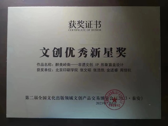 我院任百慧设计的·“迅哥”飞行棋获文创优秀产品奖;张文硕、张浩凯、金述睿、周佳杭等设计的醉美岭南——非遗文创IP 形象盲盒设计获优秀文创新星奖,巫建老师团队研发的兔桐IP 系列产品获文创优秀营销奖。