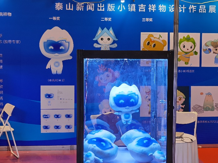 在泰山新闻出版小镇吉祥物设计征集评选活动中,14件入围作品中,我院占其中13件。最终,由张晓东教授指导、二年级研究生高妍设计的“P宝”获得一等奖并选为出版小镇吉祥物,实物产品在现场展示。