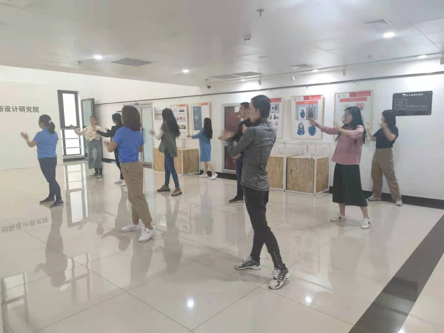 为进一步丰富设计艺术学院教职工的体育生活,维护教职工的健康权益,活跃整体氛围,学院分工会积极组织全体教职工练习第八套广播体操。希望通过组织广播体操练习活动,提醒教职工增强健身意识,加强体育锻炼,从而能以更加饱满的热情投入到紧张的工作中。