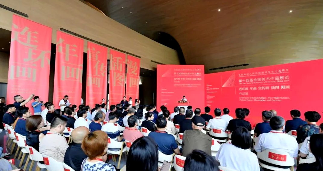 7月30日上午,由中华人民共和国文化和旅游部、中国文学艺术界联合会、中国美术家协会主办,四川省文化和旅游厅、四川省文学艺术界联合会、四川省美术家协会承办,成都市美术馆协办的“第十四届全国美术作品展览连环画 年画 宣传画 插图 漫画作品展”在成都市美术馆开幕。中国美协分党组书记、驻会副主席马锋辉,四川省委宣传部副部长、文化和旅游厅党组书记、厅长戴允康,四川省委宣传部副部长、省电影局局长、省作协党组书记张伟,四川省文联党组书记、常务副主席邹瑾,中国美协插图装帧艺委会主任、学校党委副书记、院长田忠利等领导和专家学者应邀参加开幕式。学校教师李尤松的《曼哈顿的中国杂技》、方方的《燕京山水纪》、莫沁杰的《笨人数学家——吴文俊》、牛明明的《筑梦连心路》共4件作品入连环画 年画 宣传画 插图 漫画作品展,其中进京作品2件,入展数量创新高。