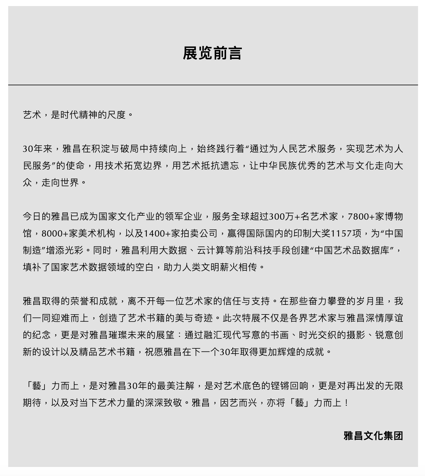 “「藝」力而上——雅昌三十周年艺术特展”是一场盛大的艺术礼颂和深度的群体对话,也是雅昌新三十年的起点,展览将持续展至2024年2月28日。