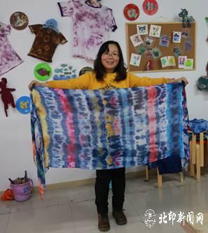 为了丰富教职工精神文化生活,提高艺术修养,11月20日下午设计艺术学院分工会组织教工体验手工扎染制作活动。通过指导教师的讲解,10名教职工了解了手工扎染制作过程,体验了扎染制作的艺术活动,在紧张的工作节奏中放松心情,体验了收获的愉悦。这次手工扎染体验活动是继手工木作活动之后对教工的又一场艺术的洗礼。
