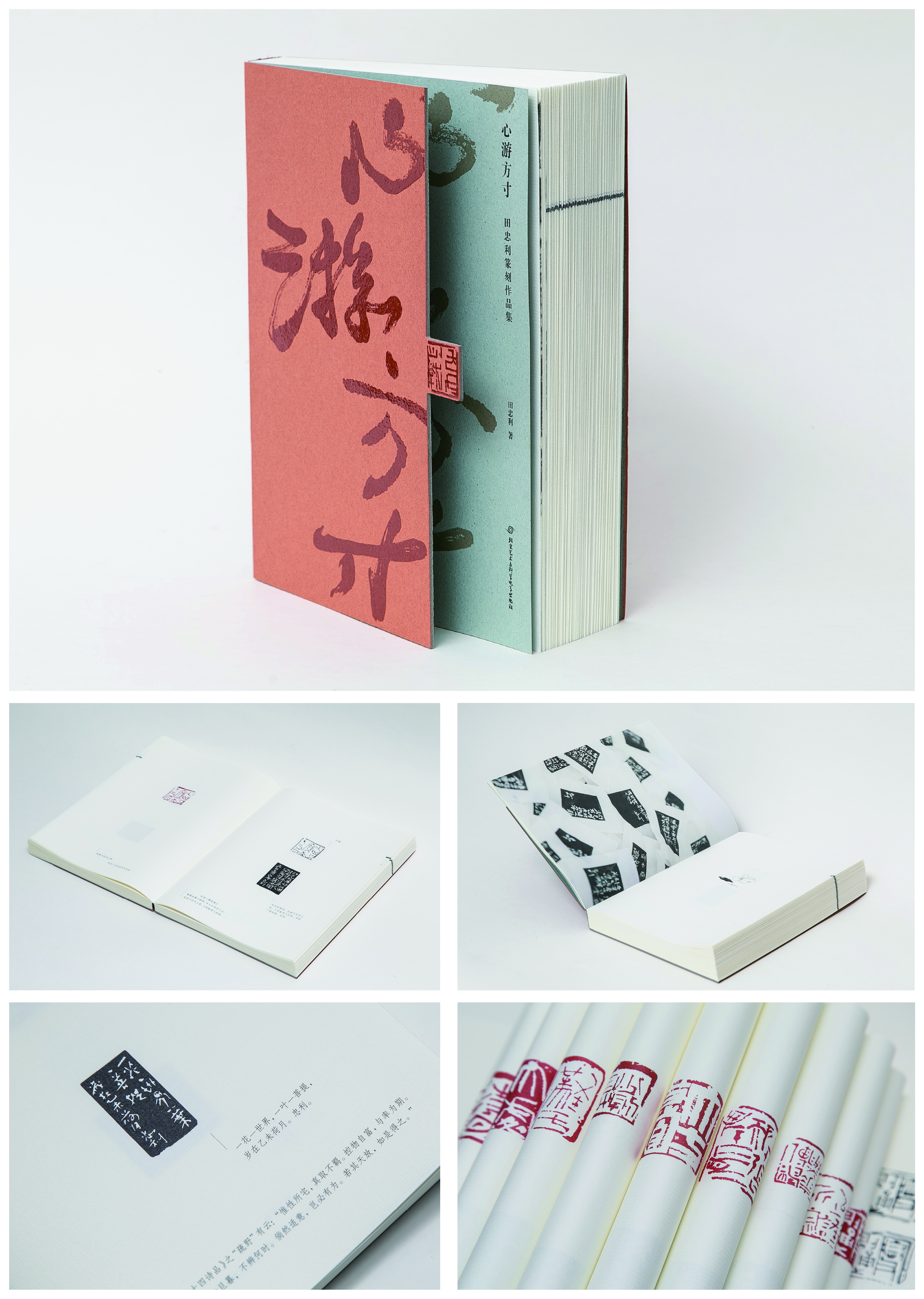 书籍设计作品《心游方寸》创作介绍:这是一本篆刻作品集,设计者力求通过设计语言,充分表达中国篆刻艺术的文化属性、形态特征、审美意味。封面由两个层次组成,第一层由艺术纸与荷兰板对裱,利用模切表现出印章的质感与打印时的肌理感,第二层通过色彩互补,触感相同的艺术纸与第一层的书法字组构出丰富的视觉延伸与层次感。内文纸张选择了宣纸,采用了中国传统的筒子页形式,版式中运用了“虚实相生”、“计白当黑”的中国艺术理念,使翻阅畅游于篆刻作品中,从视觉上更好的诠释了印章之美。