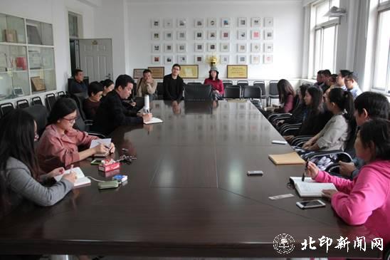 2015年10月14日下午2:30,设计艺术学院召开青年教师层面的学科专业建设发展研讨会。会议首先强调青年教师是北京印刷学院的新鲜血液,是学校未来发展的中坚力量。无论在教学、科研还是在议事等方面,青年教师的意见与建议都非常宝贵。因此,也要求青年教师们针对艺术类学科专业建设发展提出自己意见与建议,为学校、学院的发展贡献自己的力量。青年教师们也针对学院的实际情况,找到相关学科、专业未来发展的增长点,畅谈对未来发展的建议。