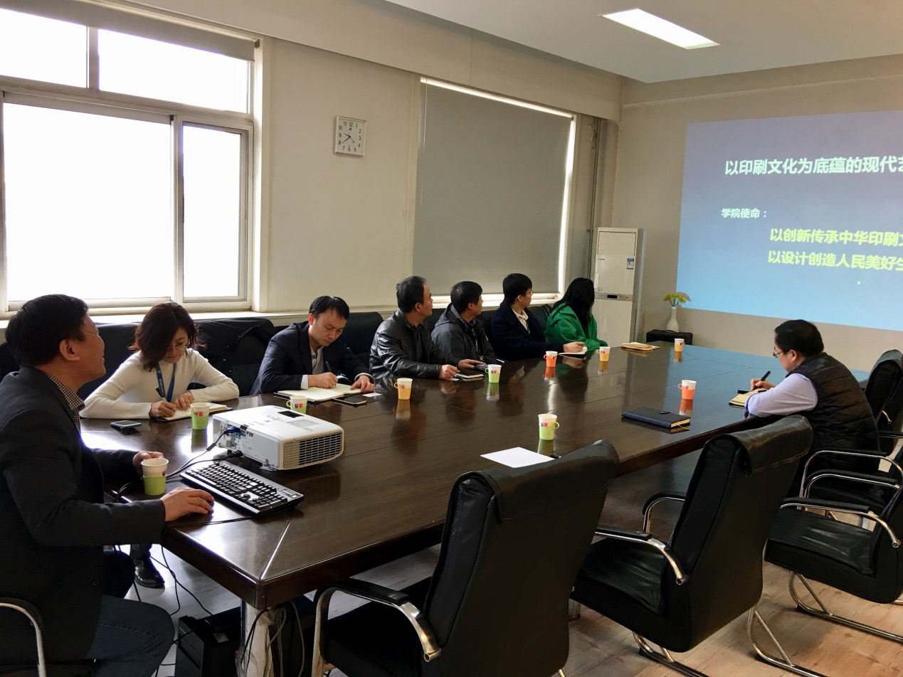 近日,航天印刷所所长倪自杰、副所长陶春、张进科等一行六人来北京印刷学院设计艺术学院调研,设计艺术学院执行院长张彬热情接待了倪自杰所长一行,并就航天印刷所与设计艺术学院开展合作事宜进行座谈。