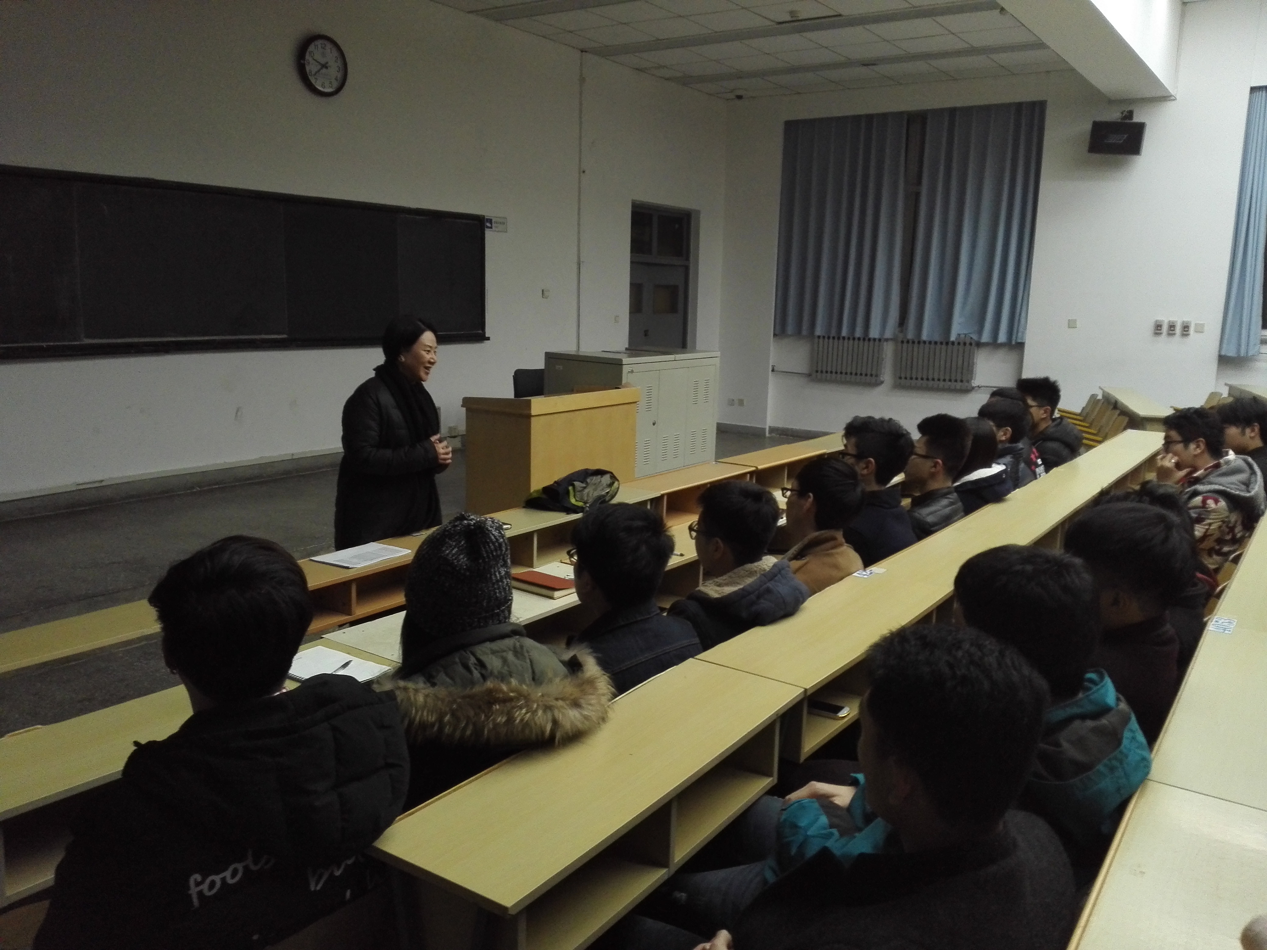 2月23日晚九点,2014级班委会在教E楼三阶召开时,恰逢学校党委副书记彭红值班。她肯定了学院抓班干促班风学风建设的做法,并兴致盎然地和同学们分享了自己求学时期的学生工作经历。彭红勉励大家充分发挥学生干部的主观能动性和榜样引领作用,为班级服务,为同学服务,在服务中锤炼自己,在服务中做出贡献。她结合艺术专业特色,以自己在艺术院校的工作经历,勉励同学们要有专业特长,将艺术情怀与学校文化相融合,提升自己,全面成长成才。