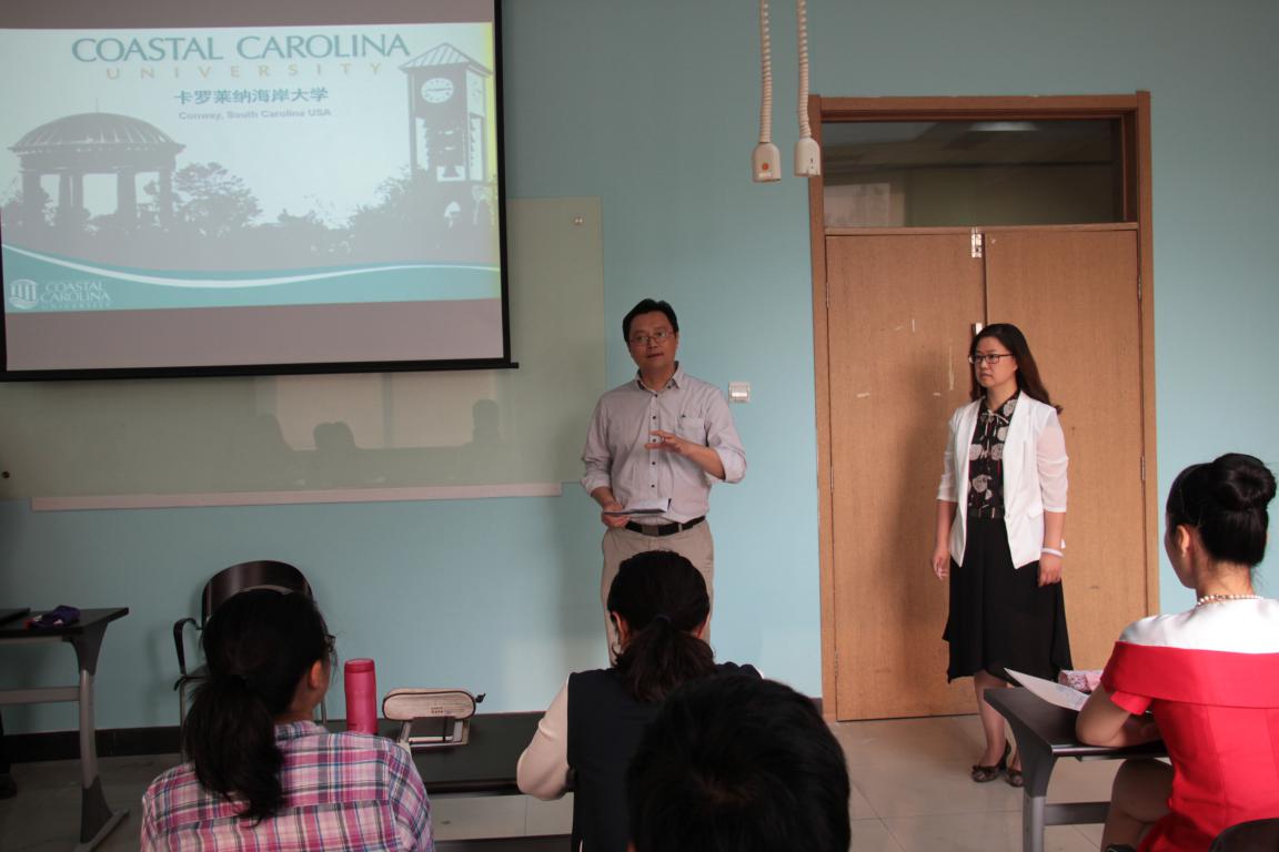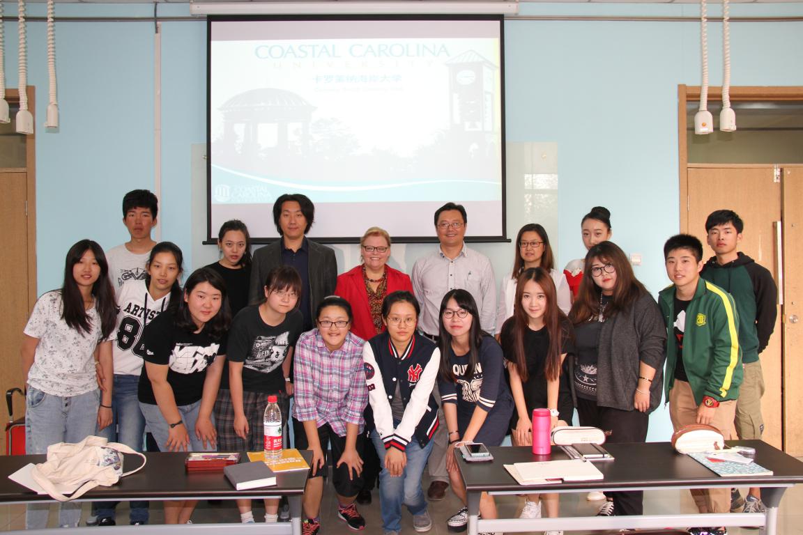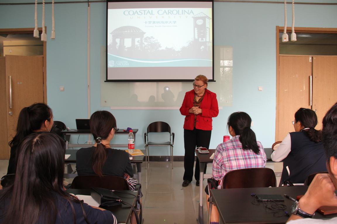 卡罗来纳海岸大学教师Darla女士为同学们介绍学校情况,并进行《平面设计基础》课程的讲授