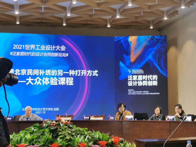 10月23日上午,设计艺术学院工业设计系副教授赵颖受中国工业设计协会专家工作委员会邀请,到2021年世界工业设计大会分论坛“泛家居时代的设计协同创新”进行主题演讲,演讲题目为:国家级非遗北京民间补绣的另一种打开方式——大众体验课程设计研究。